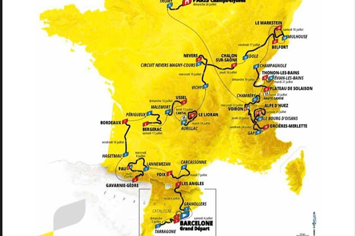 Profiles & Route Tour de France 2026 - Alpe d'Huez on stage 19 and 20; 7 mountain stages and Montmarte cobblestones